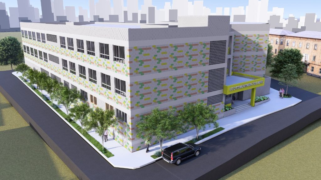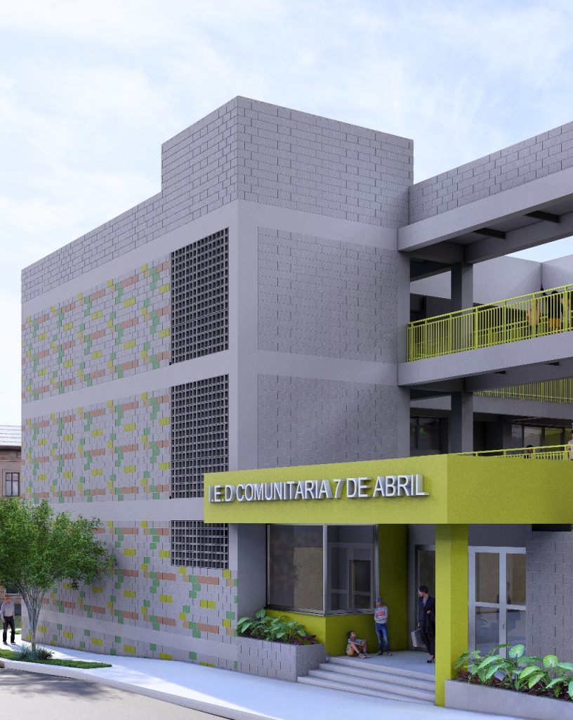 De acuerdo a lo proyectado, la ampliación de la IED Comunitaria 7 de Abril contempla la construcción de 2 bloques con un total de 19 aulas, 2 aulas de preescolar, 1 aula polivalente, un laboratorio, aula de informática, cocina, comedor, baños accesibles y cancha.