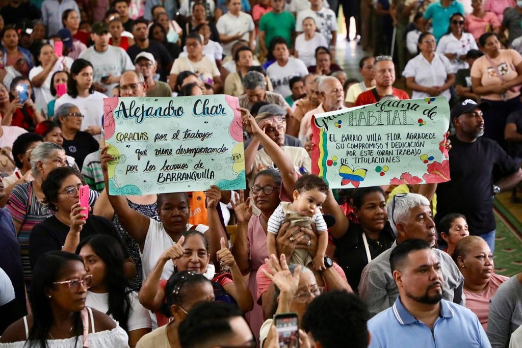La alegría y la esperanza se tomaron hoy el Colegio Don Bosco, donde 800 familias barranquilleras recibieron los títulos de propiedad de sus viviendas, en un emotivo evento encabezado por el alcalde Alejandro Char.