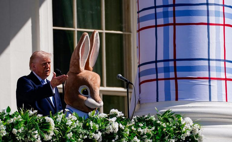 El presidente de Estados Unidos, Donald Trump, junto al Conejo de Pascua, este lunes en la Casa Blanca.© Nathan Howard (REUTERS)