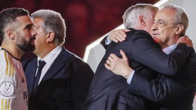 Florentino Pérez felicita al técnico Carlo Ancelotti tras ganar la Supercopa de España. Foto EFE El presidente del Real Madrid…